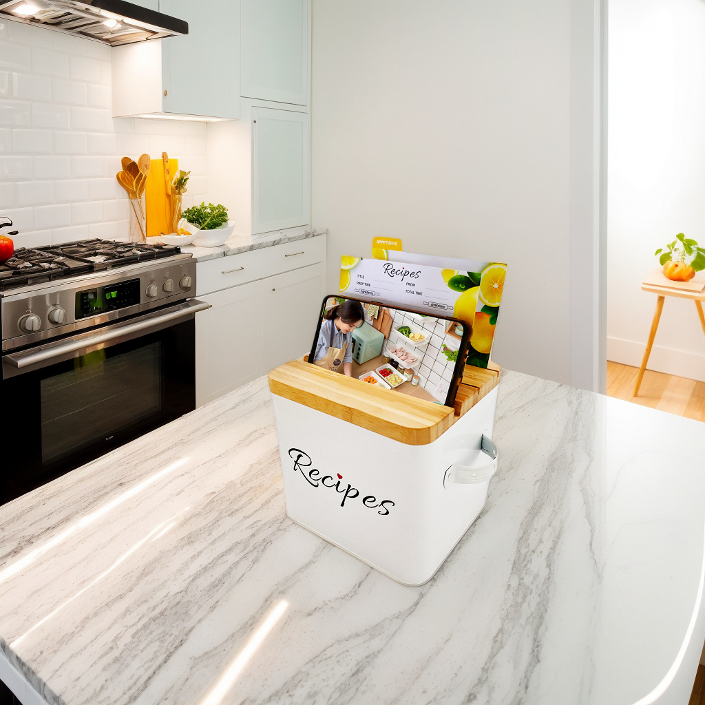 - Effortless Cooking Experience: Our recipe box comes packed with 25 recipe cards & 10 dividers, ensuring you never lose a recipe again. The lid's convenient slots hold your recipe cards or your phone for hassle-free viewing while cooking